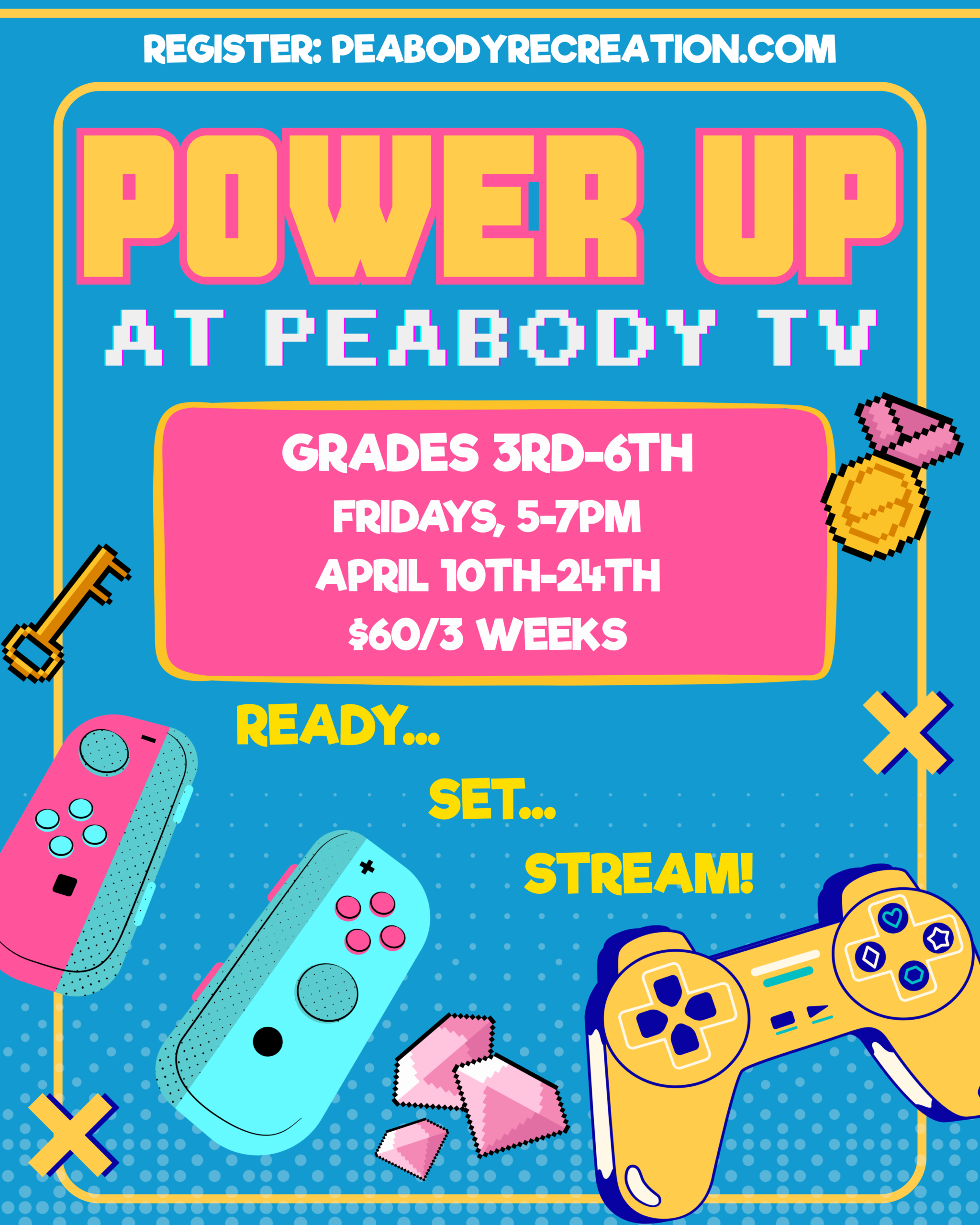 Each week, kids will work together to create fun on-camera segments, practice basic streaming skills, learn how shows are produced at Peabody TV, and try out age-appropriate games that inspire teamwork and problem-solving. With access to Nintendo Switch 2 consoles, PlayStation 5, VR headsets, and plenty of gaming computers, students get hands-on experience using next-gen gear while having a blast.